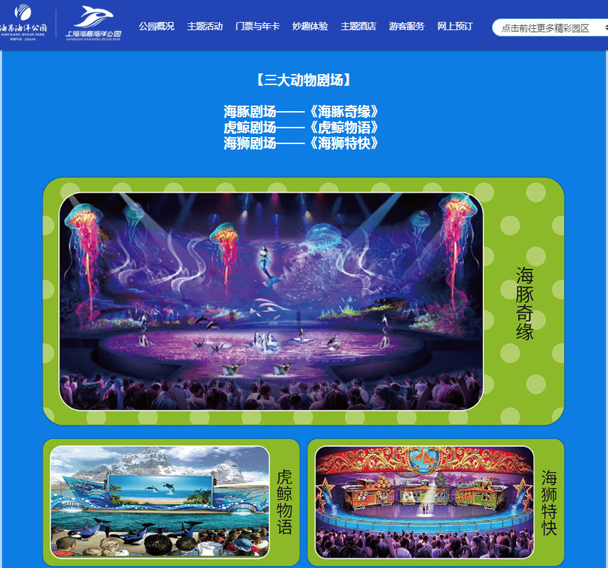 官網明確地標出園內有三大動物劇場,其中就有虎鯨劇場。