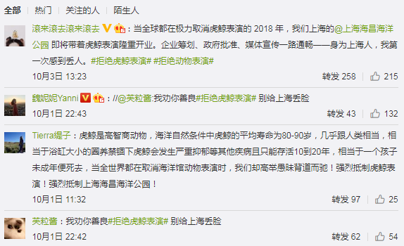 隨手搜一下,除了遊客反饋,剩下的都在反對虎鯨表演。