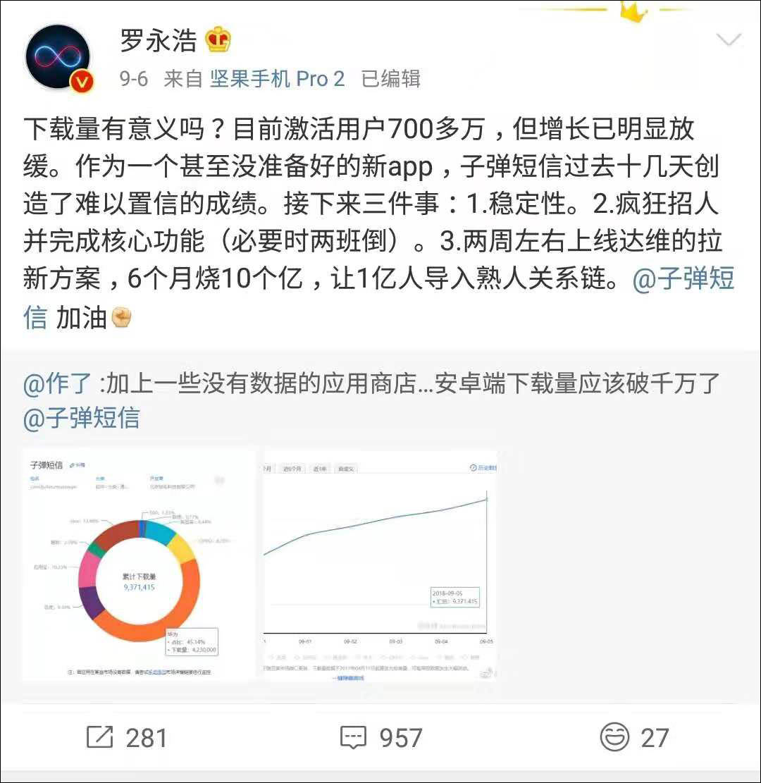 其實,在子彈短信下載量突破千萬的時候,羅永浩就表示過下載量沒意義。羅永浩説,穩定性,完善功能才是重中之重。