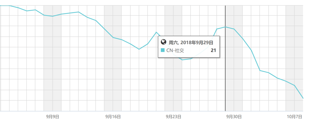 經歷了八月底九月初的火熱後,從九月中旬開始,子彈短信的熱度就出現了下降。從它那斷崖式的下載量就可以看出來。據《財經》報道,子彈短信的下載量估算已跌至5960,不及一個月前高峯時期的百分之一。