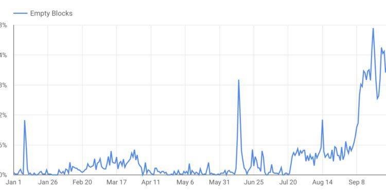 在以太坊區塊鏈開採的“空區塊”數量急劇增加,自去年9月以來增加了637%。
