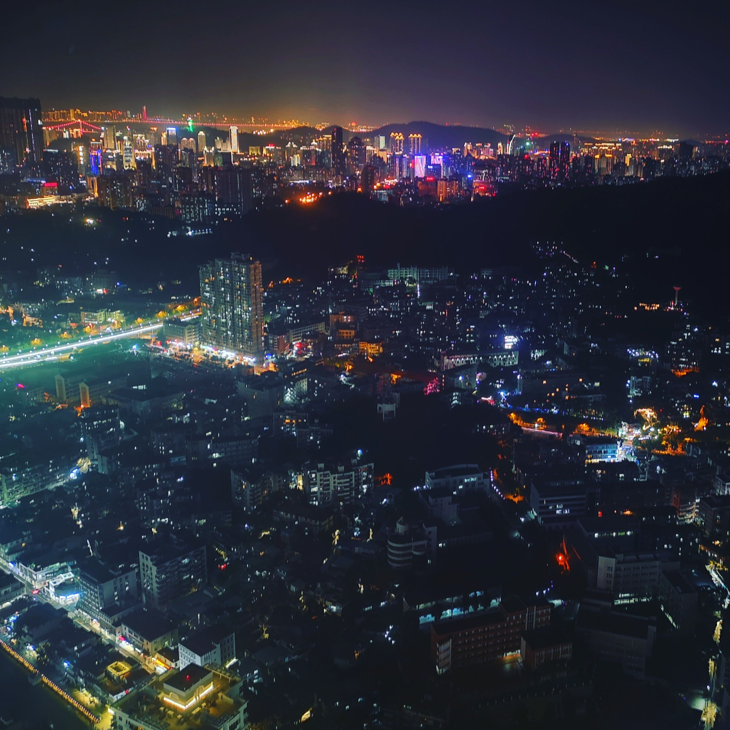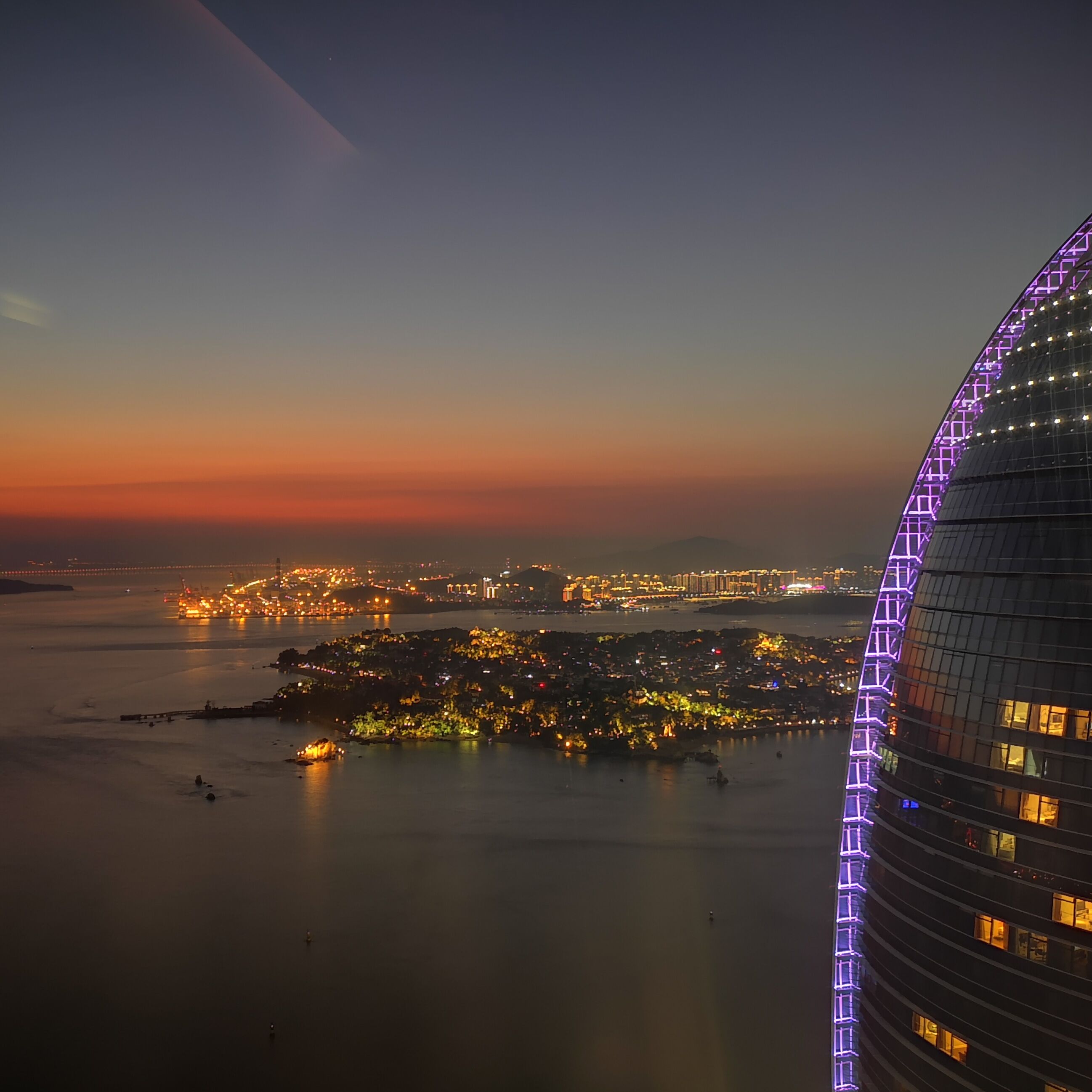 傍晚,騎了輛摩拜,沿着環島南路溜達,去了世茂雙子塔上面看夜景……