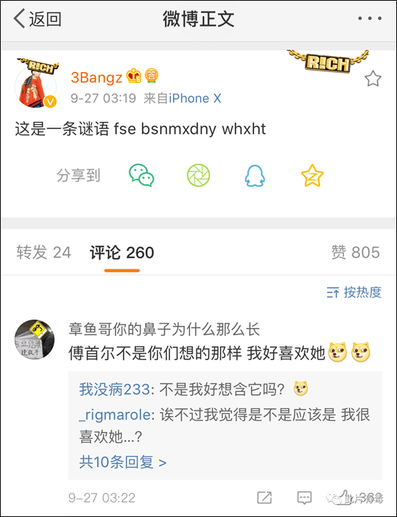 甚至連靚仔三棒子都在微博發了這種讓人摸不着頭腦,但是又被人破譯的話。