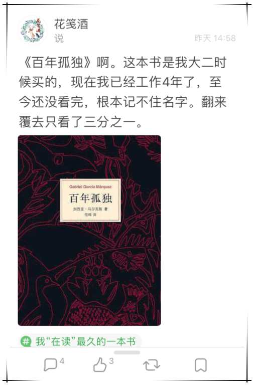 也由此衍生了一個話題——我“在讀”最久的一本書?