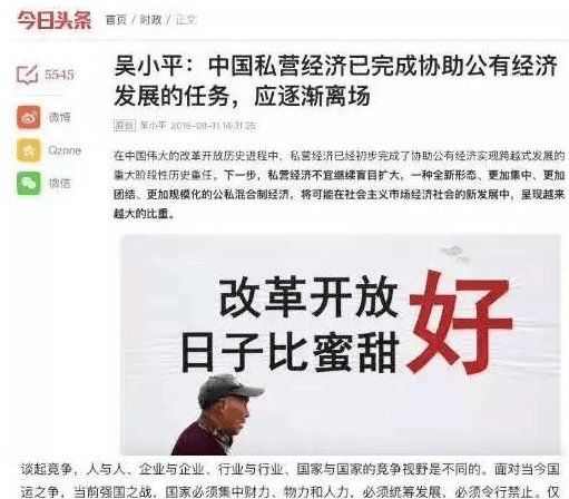前段時間有個叫“吳小平”的自媒體發了一篇文章,題目是《中國私營經濟已完成協助公有經濟發展的任務,應逐漸離場》。