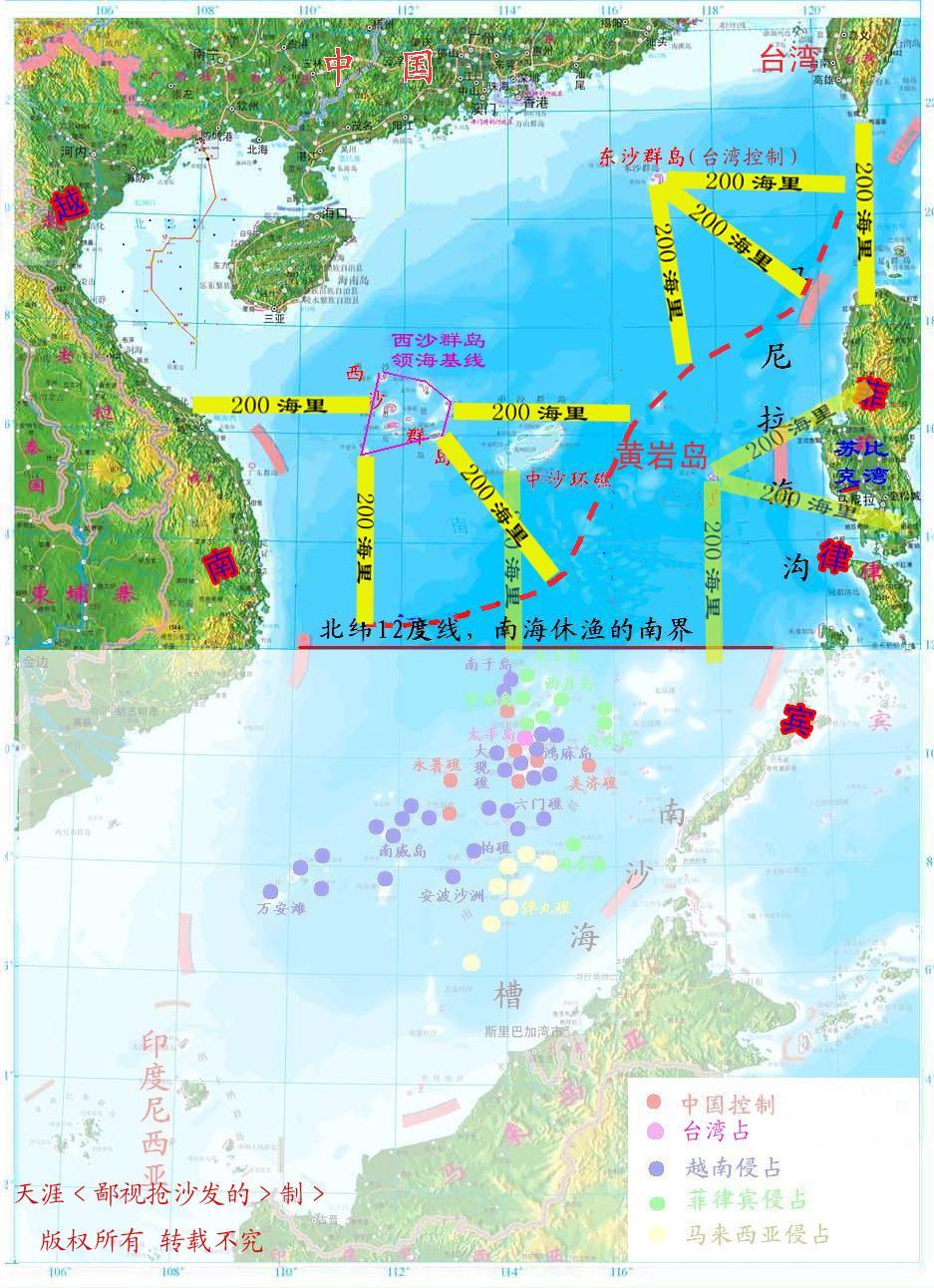 對於沿海國來説劃“領海基線”很正常,然後根據領海基線提出“200海里專屬經濟區”也是很自然的,一般大家的矛盾都是在雙方專屬經濟區劃好出現重疊後才出現的。