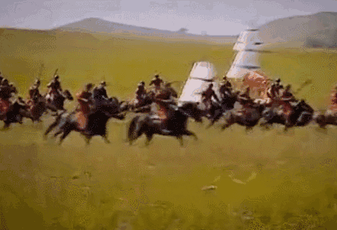 ▲《漢武大帝》中漢軍騎兵突襲匈奴王庭片段
