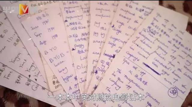 袁大姐對英語的這種狂熱,讓周圍的很多人不理解。然而,一摞摞的學習資料和書裏密密麻麻的批註筆記,用膠帶整齊封好的書籍和資料卡片,一本本爛熟於心的中英對照電影話本……記錄了袁大姐的夢想與堅持。