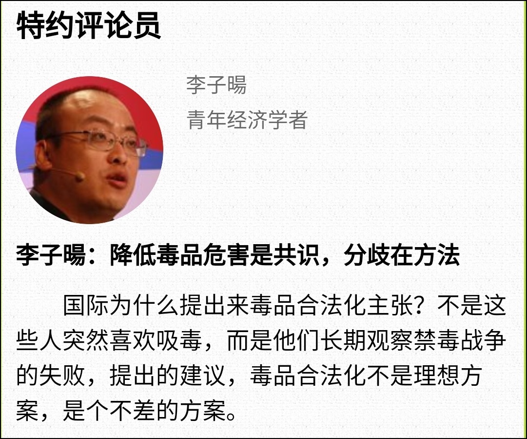 這個“之一”用在這裏甚是精妙啊,説明反對禁毒、認為應該放開管制更有利控毒,甚至未來可能要呼籲毒品合法化的還是有一些支持者的!