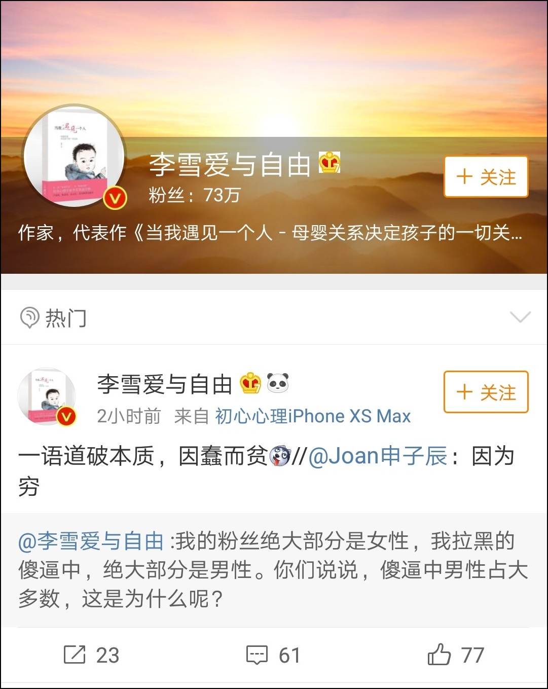 在今天(10日),李雪又在微博上重申了自己的觀點: