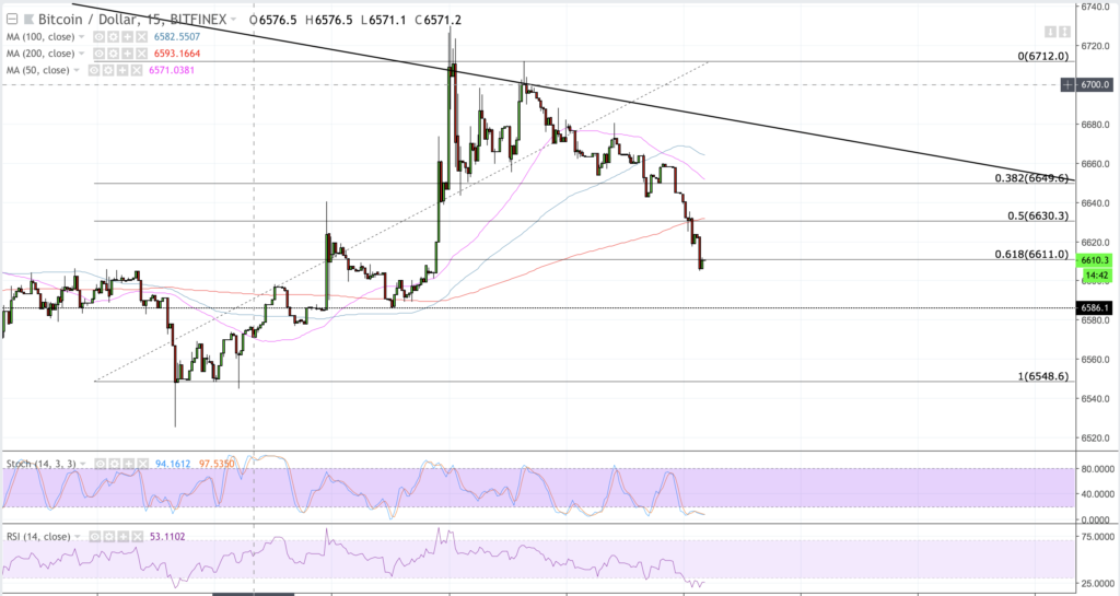 在來分析一下近幾日行情週二比特幣從6734下跌1.69%至6620。