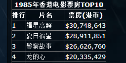 不過,票房前2名福星系列,嚴格來説,要算是洪金寶電影,而不是成龍電影。因為福星系列導演和主演都是洪金寶,成龍只能算是男二號。