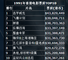 在1991年周星馳除了票房冠軍,《整蠱專家》和《上海灘賭聖》也都進入榜單前十名。