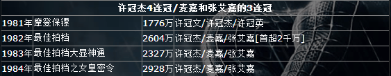 但是從1981年起,許冠傑和光頭麥嘉推出了最佳拍檔系列,再次壟斷了4年的票房冠軍。