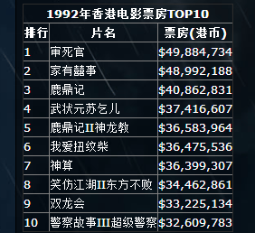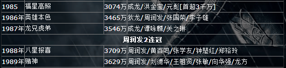 雙週一成的2位雙星閃耀,80年代末期這幾年票房冠軍被哥倆承包了。
