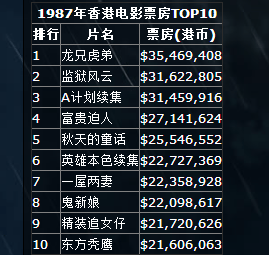 而1987年票房冠軍被成龍奪走,實在是周潤發一生最大遺憾,否則他也將實現連續4年的票房冠軍。