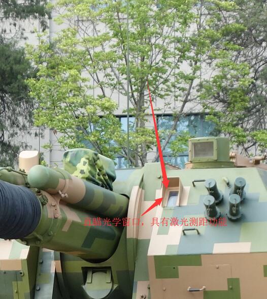 PLZ-05的這個位置則是一個光學瞄準鏡,這個鏡的作用是用於測量周圍地物與火炮的距離、角度關係,精確定位火炮,以便進行瞄準