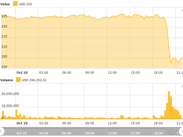 今天加密市場在一小時內遭遇急劇下跌,比特幣跌破6300美元的門檻,而以太坊幾乎觸及200美元。