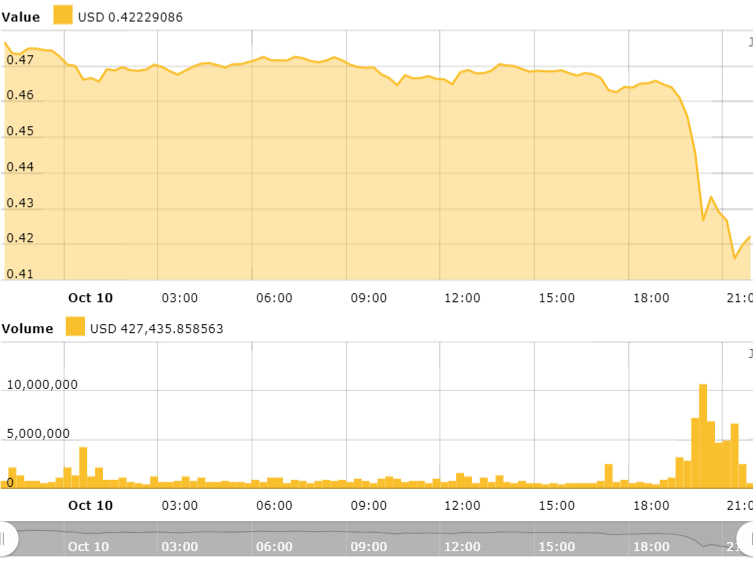 Ripple(XRP)是按市值計算的第三大加密貨幣,在24小時內出現更糟糕的損失,截至發稿時下跌超過11.41%。目前Ripple的交易價格為0.42美元,與以太坊相同的時間跨度大幅下挫。本週XRP下降了近20%。