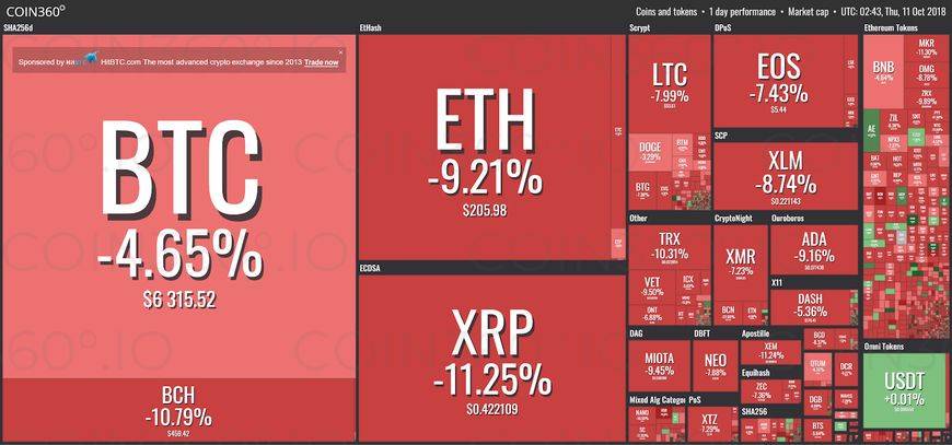 加密市場今天大幅下挫,比特幣跌破6300美元,以太坊下跌了9.67%_風聞