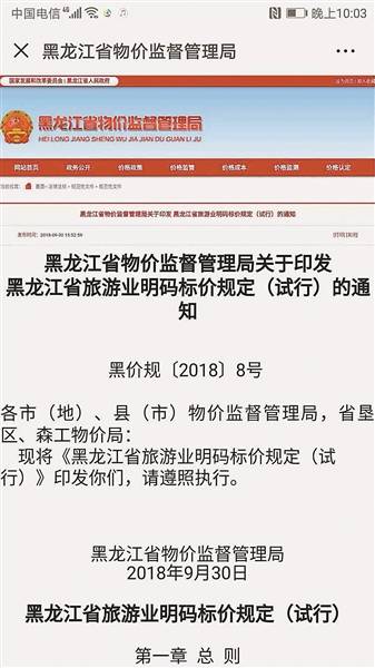 國慶假期前,黑龍江省物價監督管理局發佈了《黑龍江省旅遊業明碼標價規定(試行)》(簡稱“規定”)。