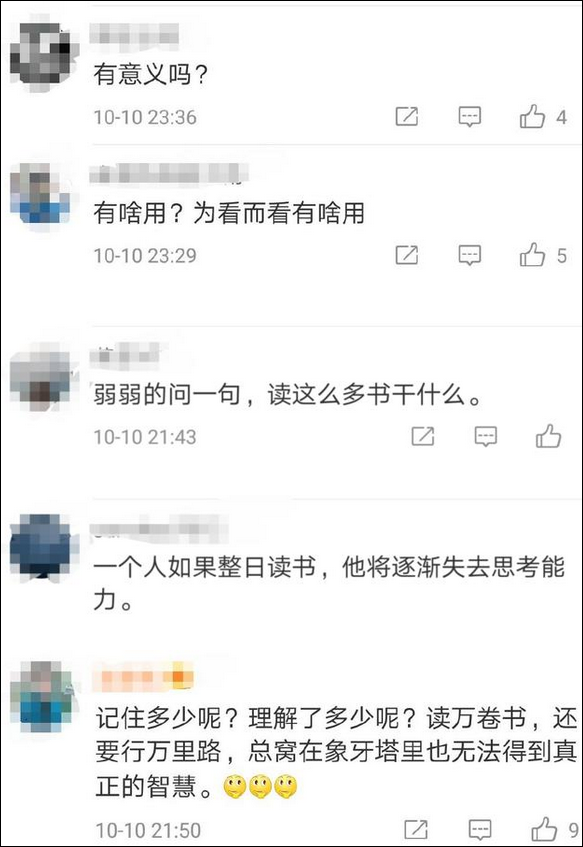 綜合以上兩個例子,我們來思考一下,一年/幾年讀XXX本書是不是裝嗶? “閲霸”備受爭議的背後,主題是什麼呢?