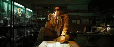 他飾演的小馬哥,身穿黑色風衣遊走在街巷。頭戴墨鏡,頗具神秘氣息。