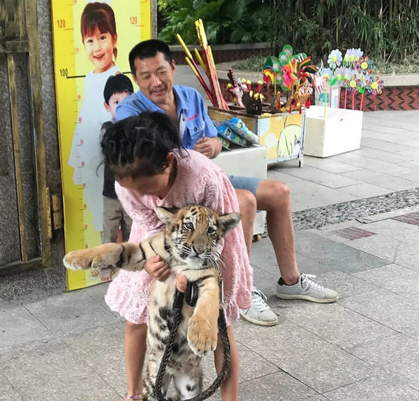10月10日,新京報微博發了一個視頻,講的是福建泉州一名9歲的女孩在動物園門口遛老虎,吸引力不少路人的注意。