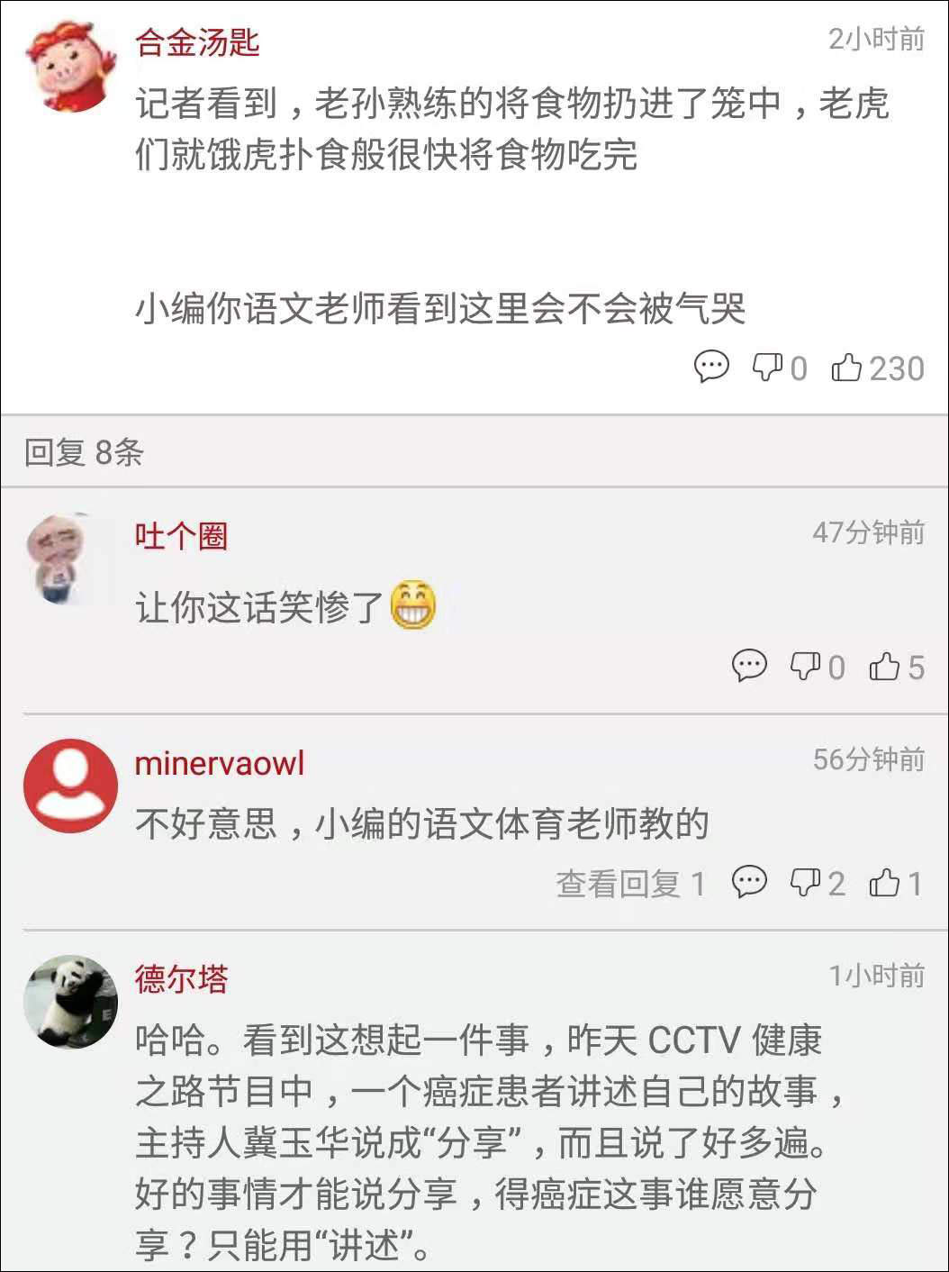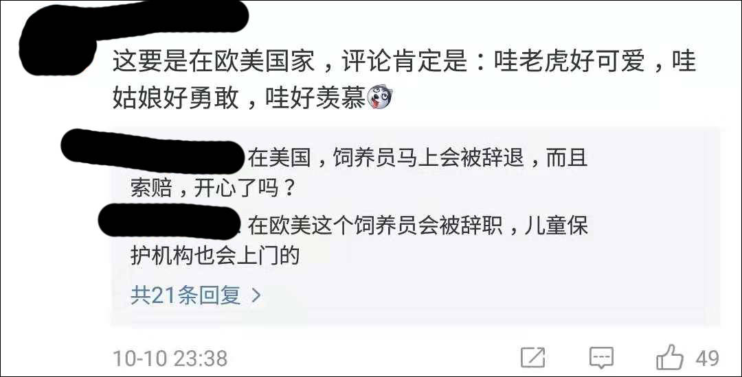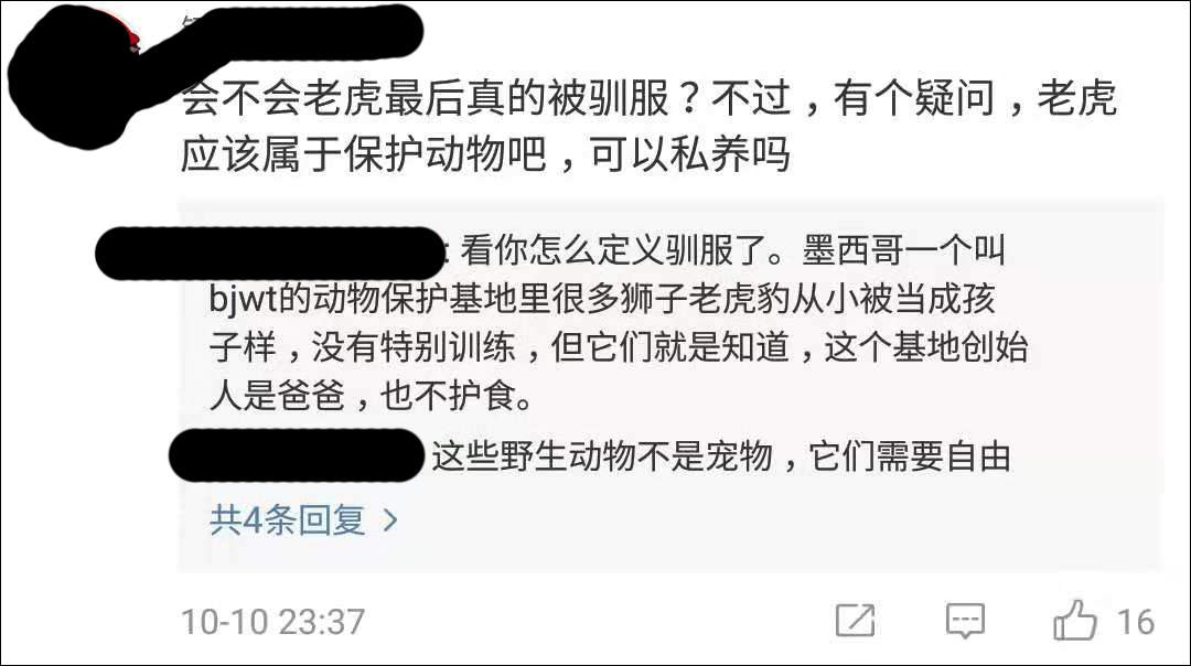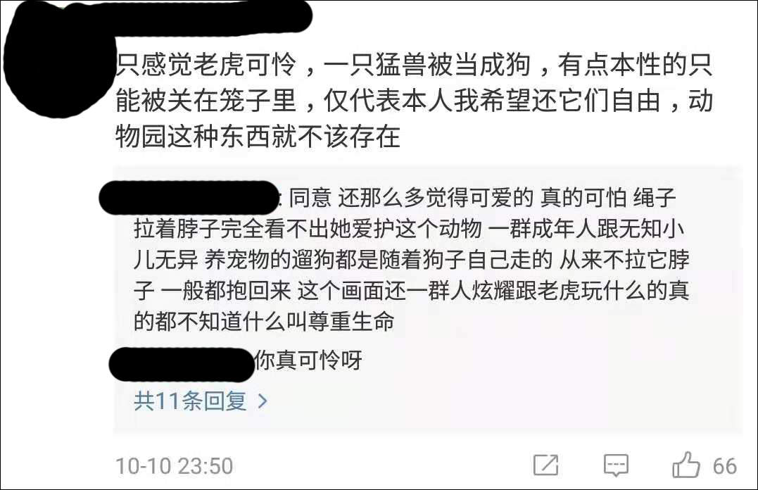 見過遛老虎的嗎?微博和觀網評論區好像有點意思_風聞
