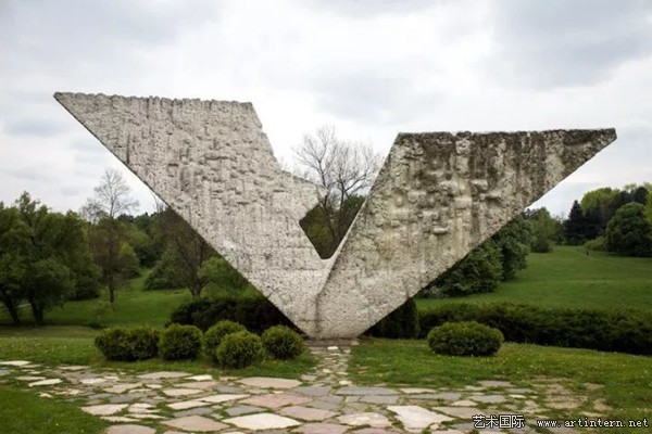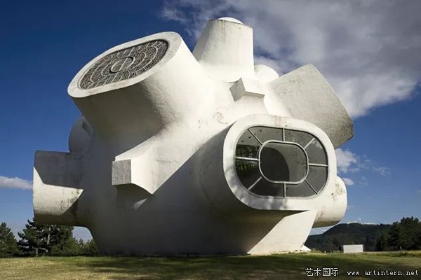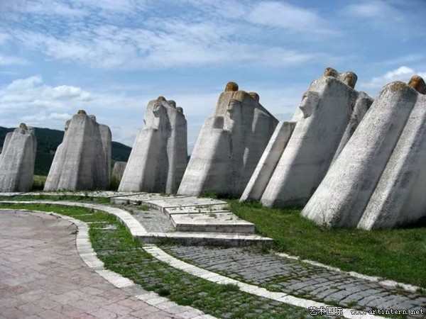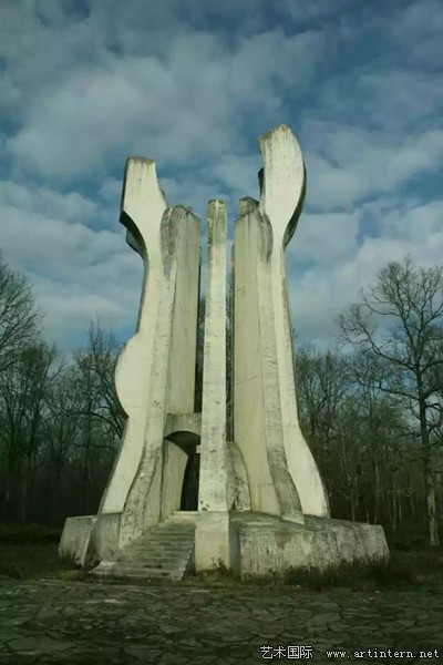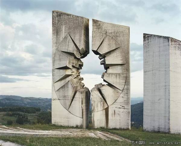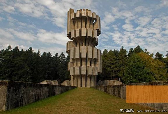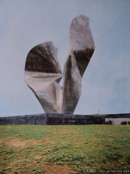 按:作為“不結盟運動”的發起人之一,前南斯拉夫總統鐵托在當年反對任何形式的“殖民主義、帝國主義和新殖民主義”,所以,自然不會服從蘇聯斯大林政權的對外擴張,於是和老大哥關係破裂,直到1955年,鐵托才與赫魯曉夫改革後的蘇聯恢復正常外交關係,1956年匈牙利事件後,蘇聯與南斯拉夫關係一度又有惡化,後來隨着中蘇交惡與決裂,蘇南關係又迅速升温。在這場政治博弈中,從南斯拉夫諸多社會主義標誌性的紀念碑風格上,其實也不難看出南斯拉夫試圖擺脱蘇式美學的抗爭與努力。一種相對特有的抽象和野蠻,使得其與同時期的蘇式美學拉開了一定的距離。