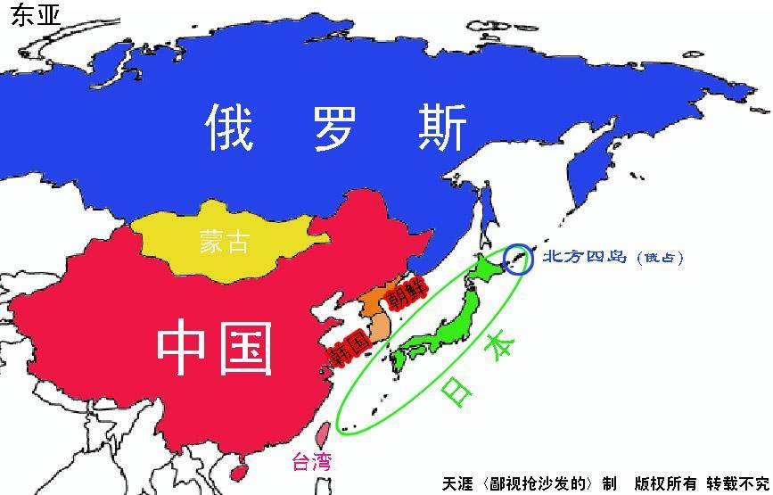 讓我們先明確東亞的範圍,從現有國家的角度東亞地區包括中國、俄國(亞洲東部部分)、蒙古、朝鮮、韓國、日本,這五個國家。