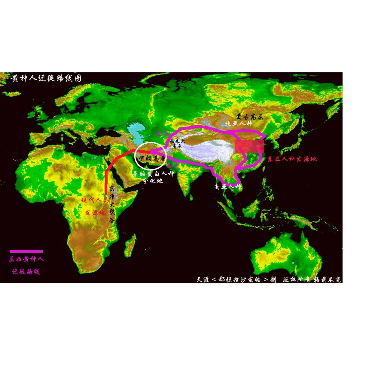 當然最後由於東亞黃種人佔據了核心地區,勢力不斷的壯大,反過來向北和向南又形成了新的融 合。
