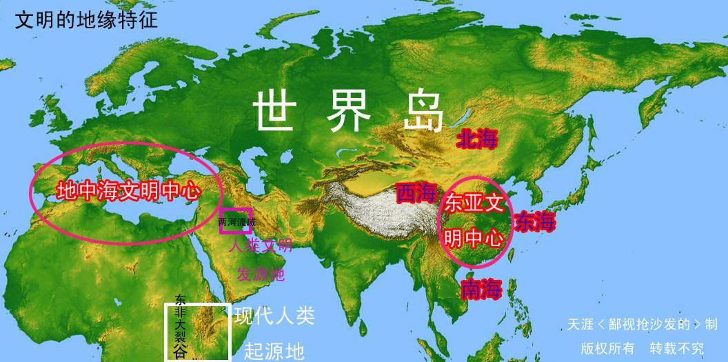 如果説西方的歷史起源是一部“地中海”史,那麼東方文明則可以被形容為“海中地”。作為西方文明的心臟地帶——地中海,起到的更多是連接南邊民族的交通平台的作用。