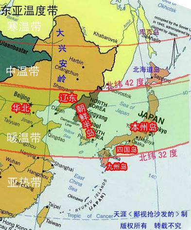 這就是我下面要提出的“42度暖温帶”理論。這一理論不僅能解釋東北的問題,亦能解釋朝鮮半島和日本能獨立存在的原因。