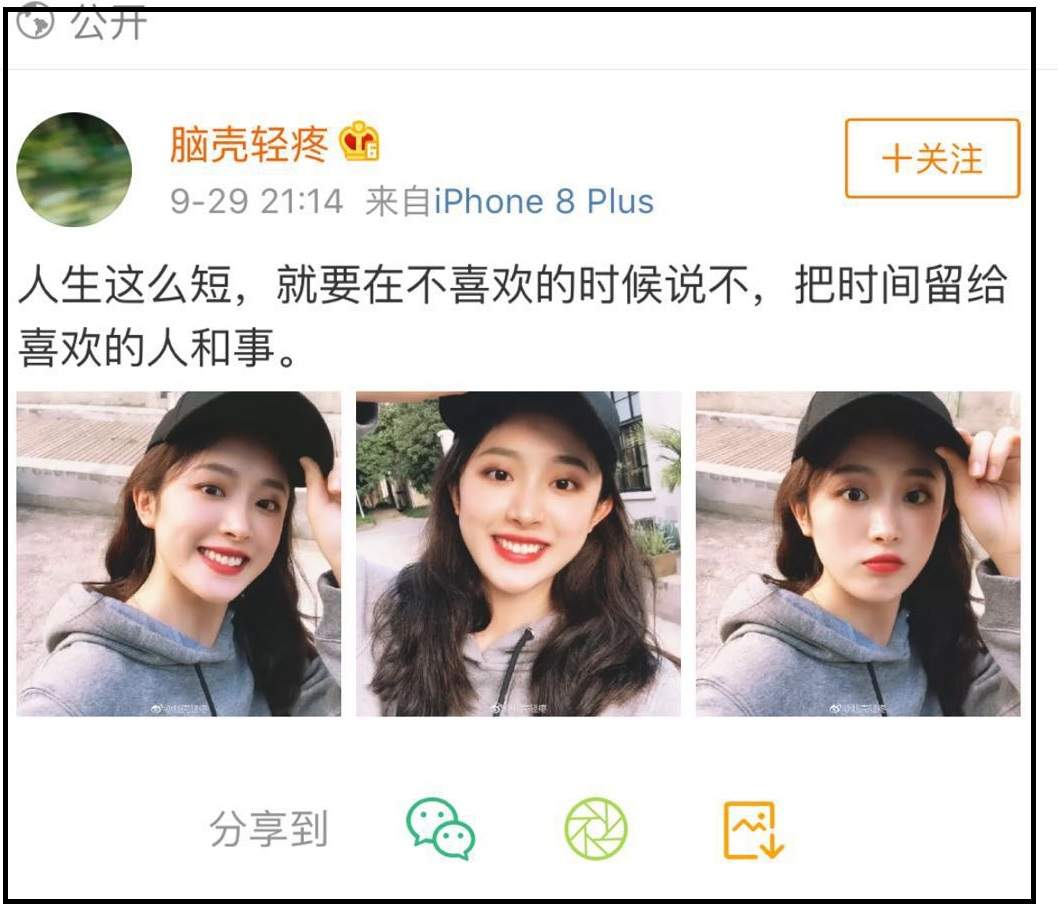 先跟大家介紹一下主人公,一個名叫張晚荻小網紅。微博ID:腦殼輕疼,雖然互動量沒有超過百的,但是人家有16萬個粉絲。