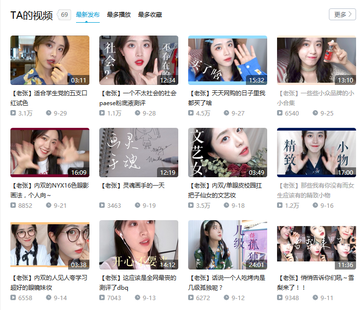 這個小姐姐呢,素顏底子還不錯,在B站走的是美妝博主路線。風格大概是小清新及可愛甜美路線。長相雖然不能算是驚為天人,但至少也是個小家碧玉,在人設加成下,還是能撩到不少人的。