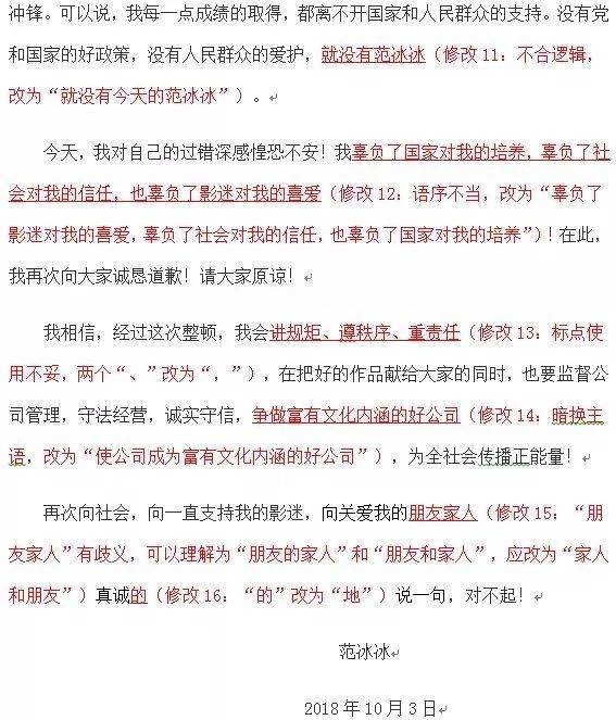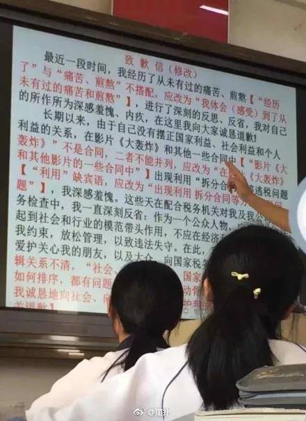 范冰冰道歉信成了語文課改錯題?_風聞