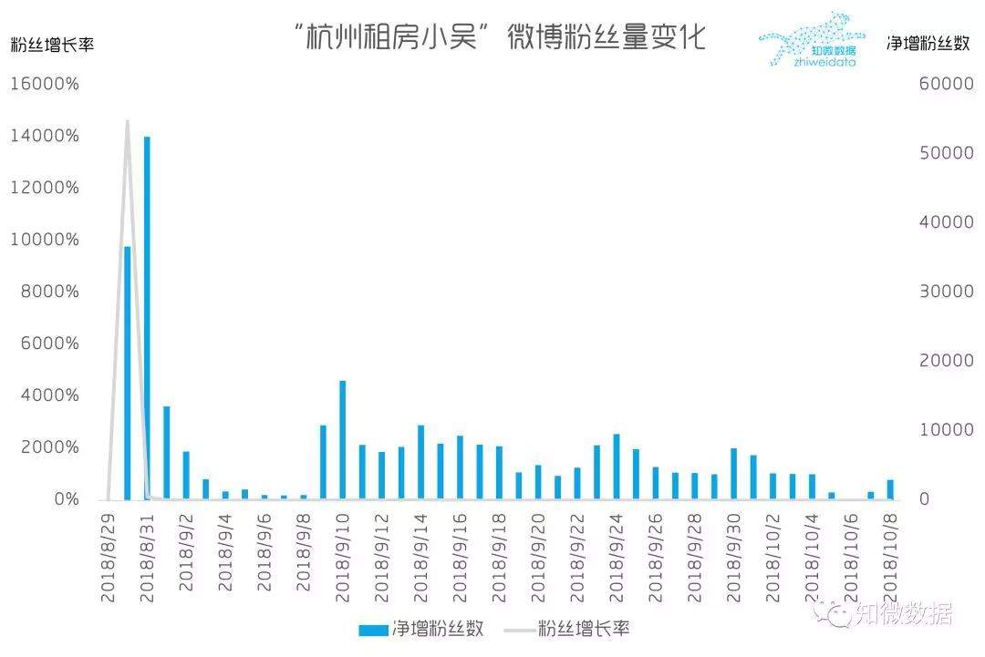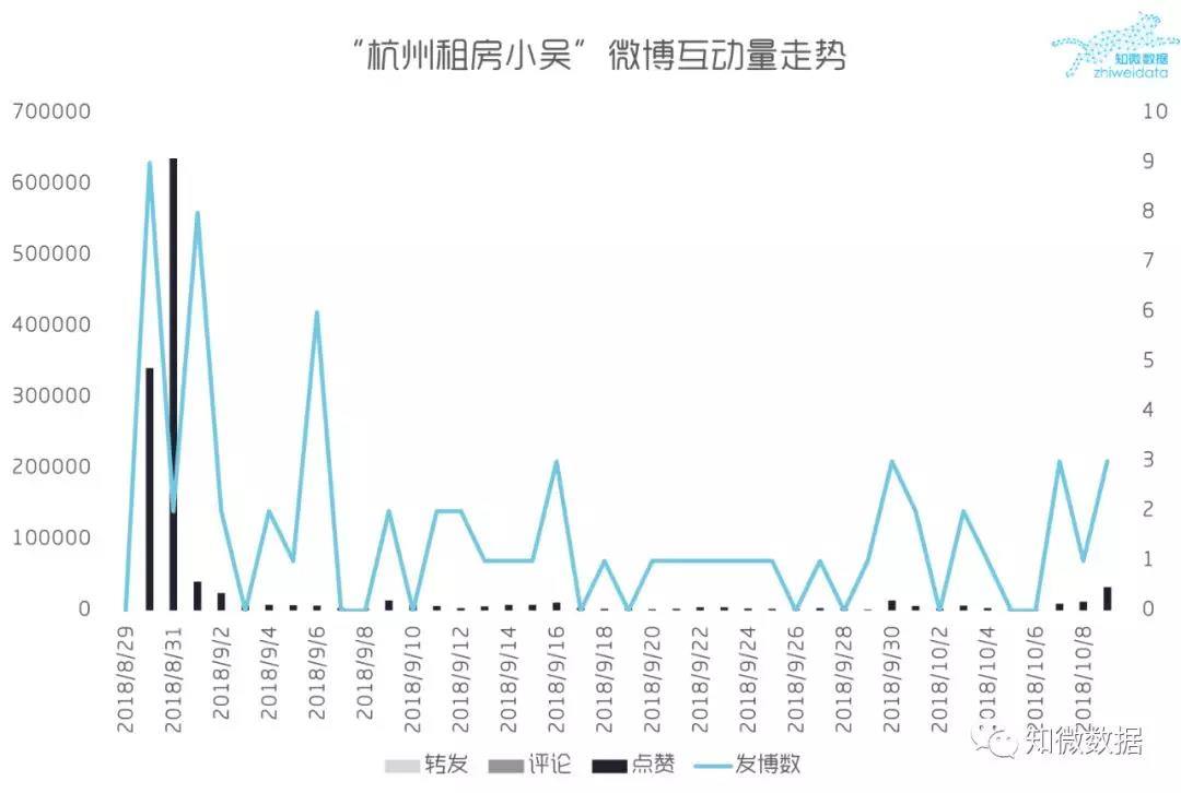 被推到台前的小吳,他的想法我們無從得知。地鐵廣告的數據除了營銷號的狂歡外,網友們似乎也開始有了一絲疲憊:@杭州租房小吳 微博賬號的互動量與粉絲量走勢,早已逐漸平靜。