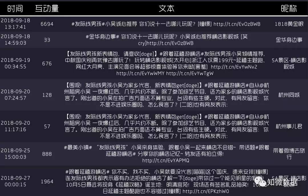 隨後,橫店影視城官方賬號@5A景區-橫店影視城 、浙江當地資訊類賬號@金華身邊事 @杭州同城 @杭州事兒君 以及微博官方@帶着微博去旅行 等陸續發佈微博,但互動量均較低。