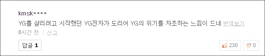 有韓國網友説,本來YG製作《YG戰資》是為了挽救自己岌岌可危的市場,結果卻把自己給坑了。