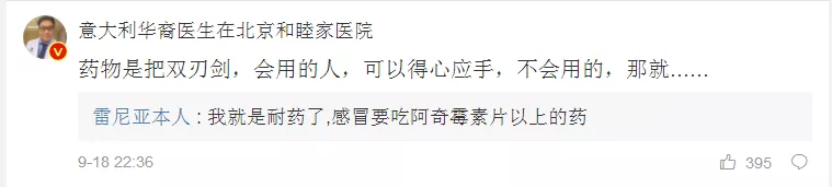 北京和睦家醫院全科醫生 郭坦坦 在其微博 @意大利華裔醫生在北京和睦家醫院 上分享了自己在歐洲和中國見到的用藥情況: