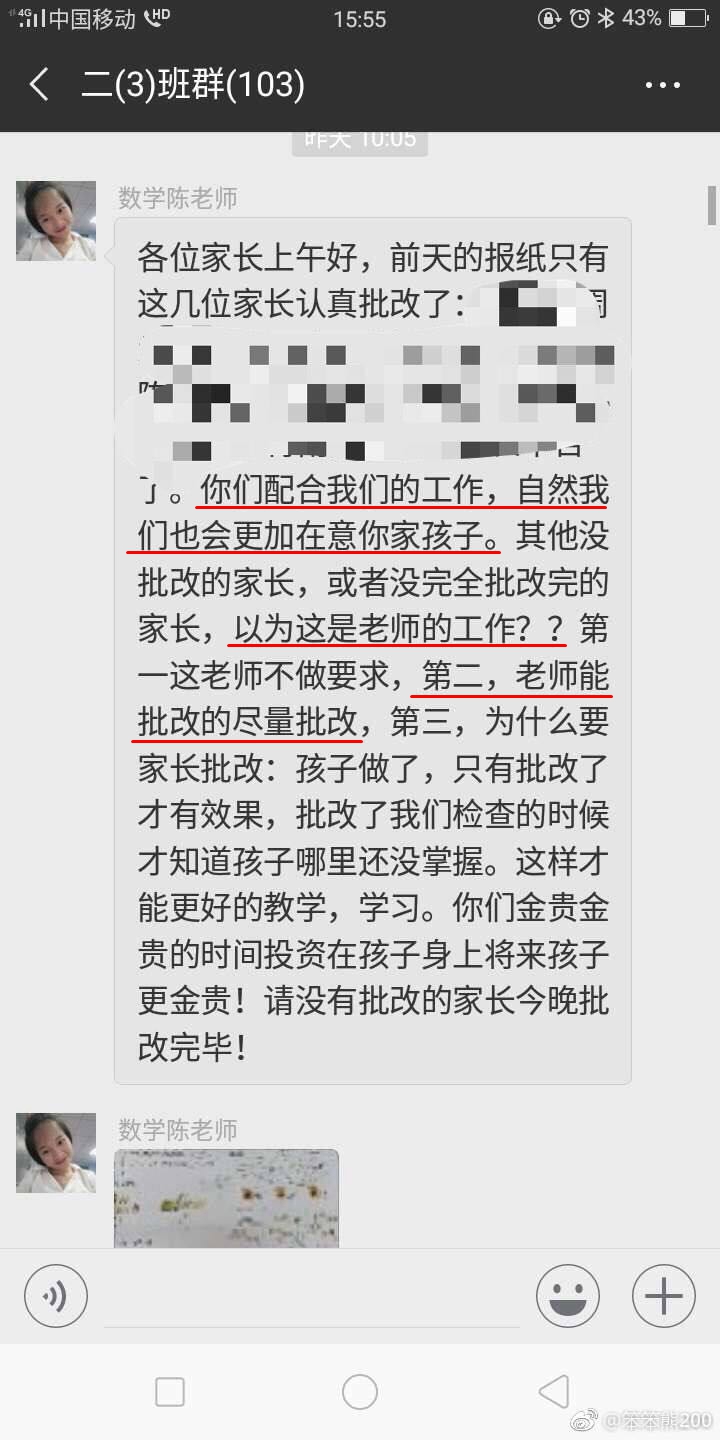 家長沒批改作業,老師在羣裏點名:將來孩子和你一樣可悲_風聞