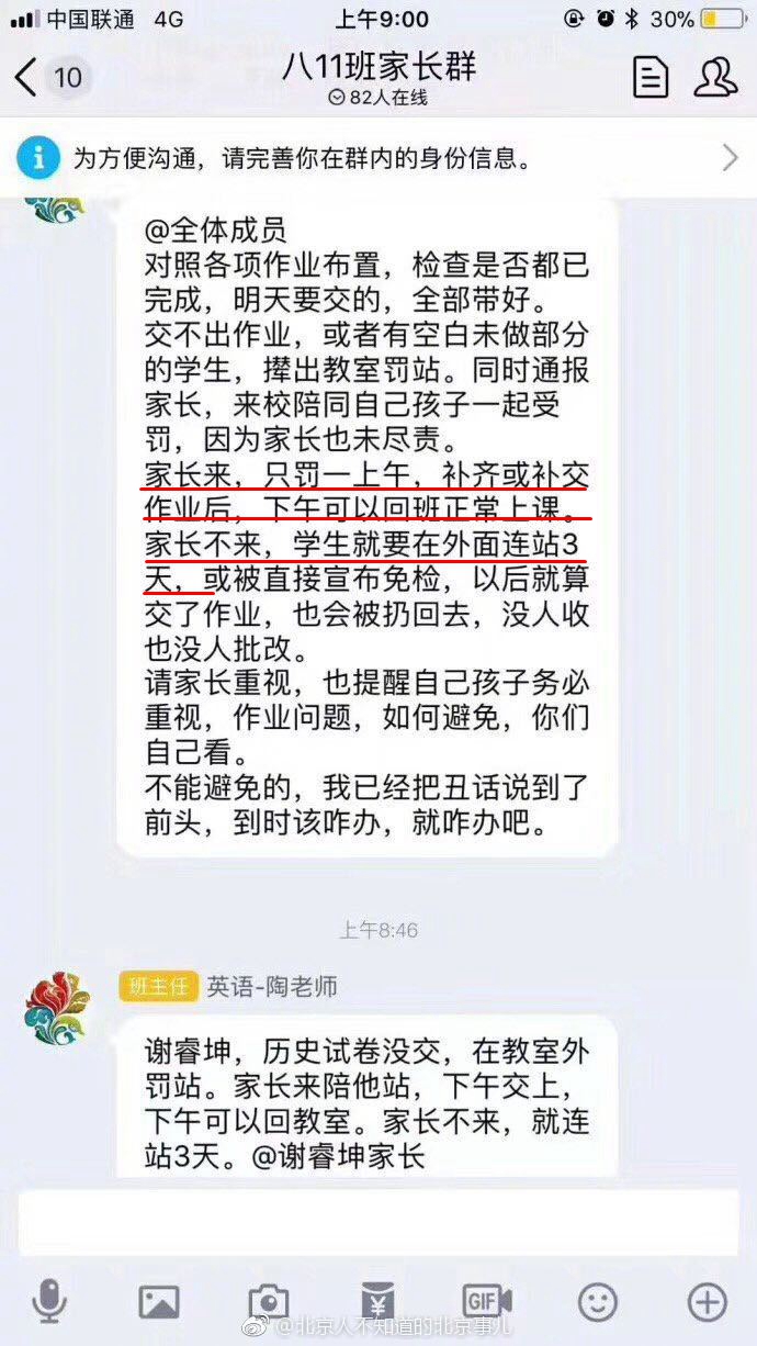 作業要家長批改,不會還要被老師在羣裏點名冷嘲熱諷,爆料人發問:你們所作所為對得起你的三尺講台嗎?