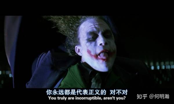 但對於小丑來説,這就是他的勝利。因為小丑的理念説白了就是:秩序和正義無法拯救哥譚,還不如所有人一起墜入混亂和罪惡。
