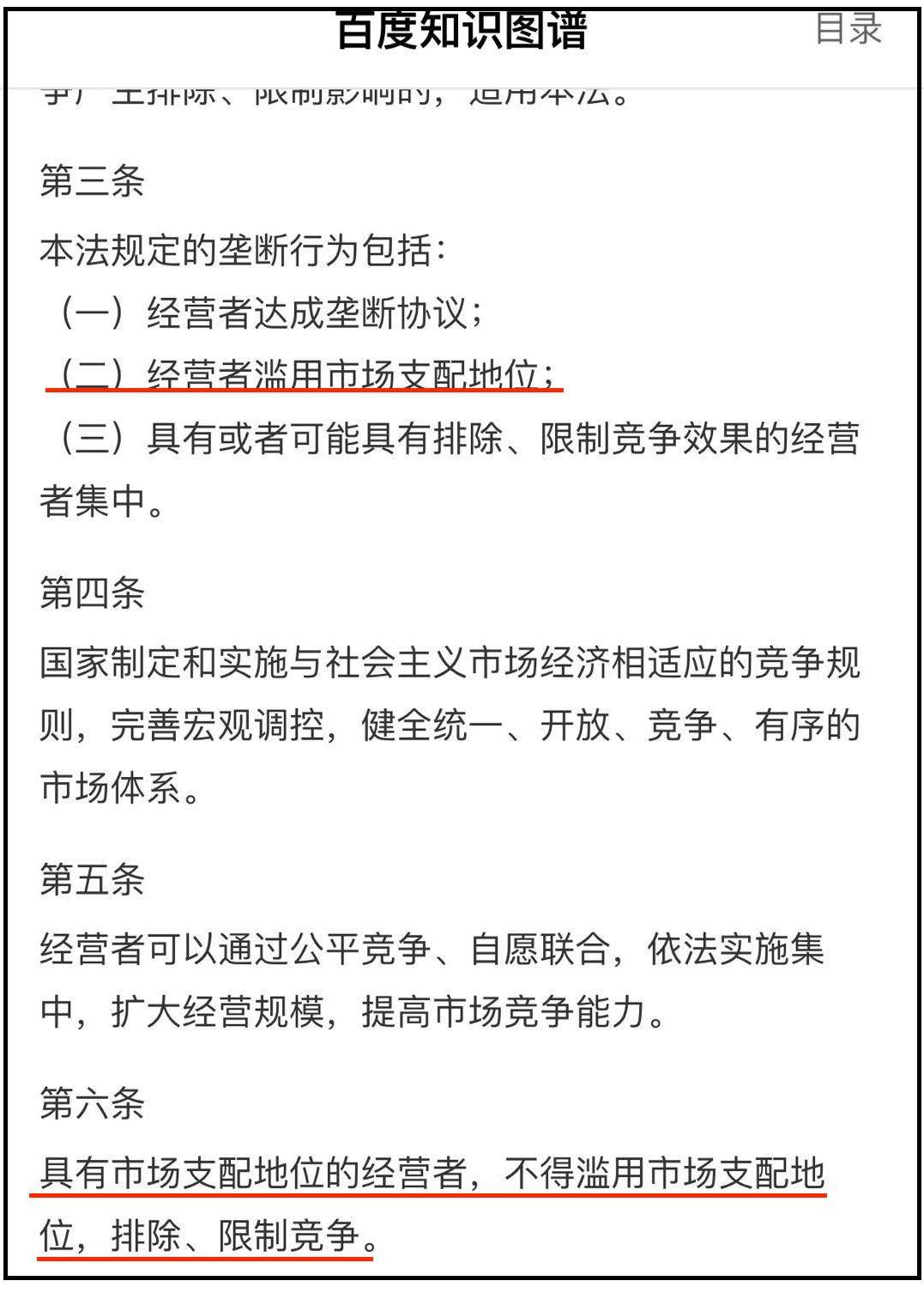 第一個原因,説來可能你不信。我國的《反壟斷法》壓根不禁止企業具有壟斷地位。我國法律禁止的是企業在壟斷之後,是否在經營過程中濫用市場支配地位。