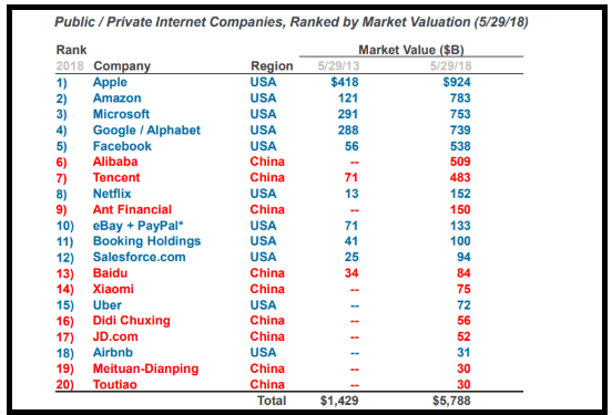 順帶一説,全球排名前20的互聯網公司,中美對半分,這算不算也是一種寡頭呢?