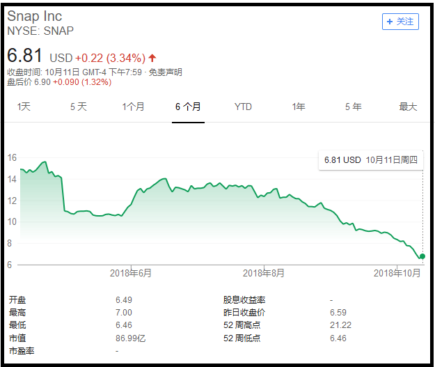 看着很可憐對不對。沒關係,撲街的也不止我們。中概股下跌,美國科技股也沒好到哪裏去。當年以“閲後即焚”為賣點的Snapchat,15年拿下了包括阿里在內三家對沖基金5.37億的融資,躋身美國十大風投交易。然而,它的股價跌得真的不是一般的漂亮。今年2月7日,它達到了年內最高價20.75美元。而就算是今兒它小幅上漲了,也不過只到6.81美元。