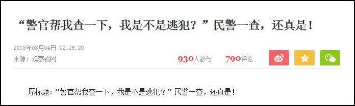 又一個跑派出所詢問自己是不是逃犯的,結果當然……_風聞