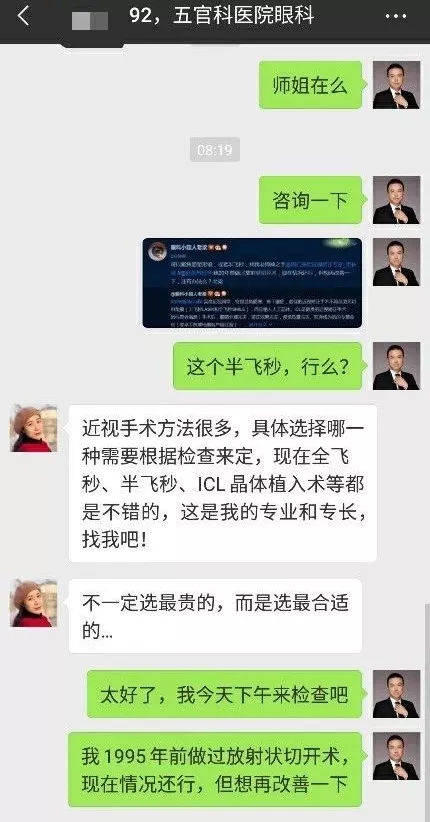 作為一名醫生,好處就是找同學諮詢比較方便。我先是找到一個眼科的師弟博士,他又向我推薦了上海市五官科醫院的美女師姐。師姐對自己的專業很有自信,我上午聯繫下午就去做了檢查,這效率槓槓滴。