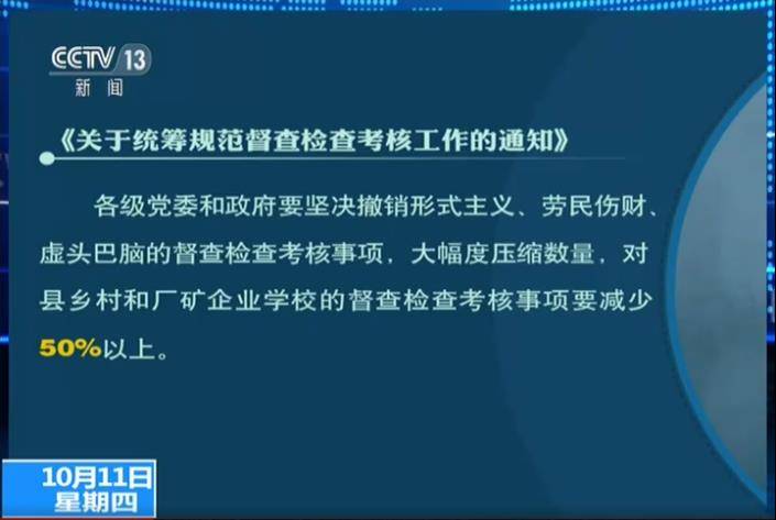 結果這個,據我所知,其實今天有關人士在介紹的時候,這個通知當中有中央領導的同意,其實中央領導可能指的就是總書記,是總書記親自抓的這件事,這個咱就先不説。你看毛院長,這裏頭還有數量,要減少數量,對縣鄉村和廠礦企業學校的督察檢查考核事項要減少50%以上。是不是會有的這個形式主義就減50%,在我看來這是最少要減50%的意思吧,您的感受呢?